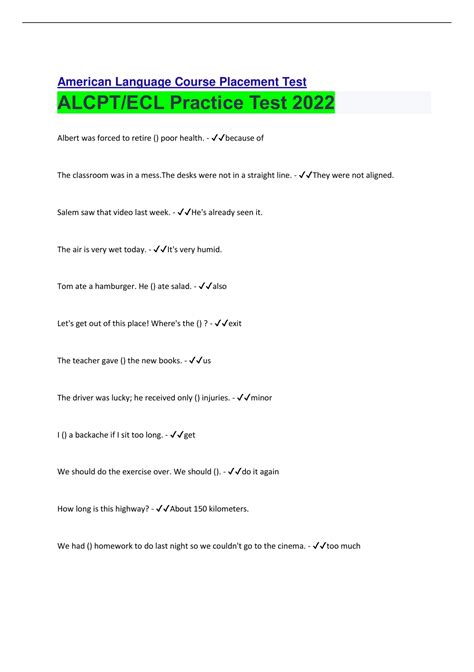 Free PDF AMERICAN LANGUAGE COURSE ALCPT PLACEMENT TEST Reader Gutenberg